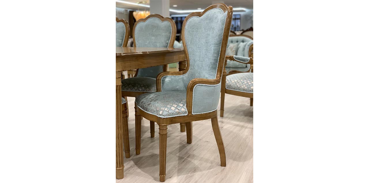 این ست 7 نفره (یک کاناپه سه نفره و چهار کاناپه تک نفره) با پارچههای نفیس ترک پوشیده شده است و با گزینهی فوقالعادهی داشتن دو مدل ناهارخوری (گرد با پایه گلدانی و مستطیل)، به شما این امکان را میدهد که یک مجموعه کامل و هماهنگ برای پذیرایی از مهمانان خود خلق کنید.